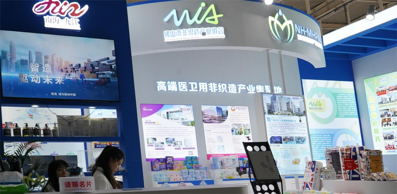 This year, the Foshan Nanhai Medical and Hygiene Products Industry Association presented a strong lineup with 25 member enterprises, displaying a diverse range of innovations across the entire industrial chain—from production machinery and raw materials such as masterbatch, nonwoven substrates, absorbent cores, and breathable films, to finished disposable medical and consumer products. These offerings spanned multiple fields including infant care, feminine hygiene, adult health and elderly care, medical and health supplies, travel convenience, and pet care. Aligned with the themes of “premiumization, intelligence, sustainability, and integration,” the exhibition highlighted the product strength, innovation, technological capability, and brand influence of Foshan Nanhai’s nonwovens and hygiene enterprises, showcasing industry vitality and capturing new market opportunities.