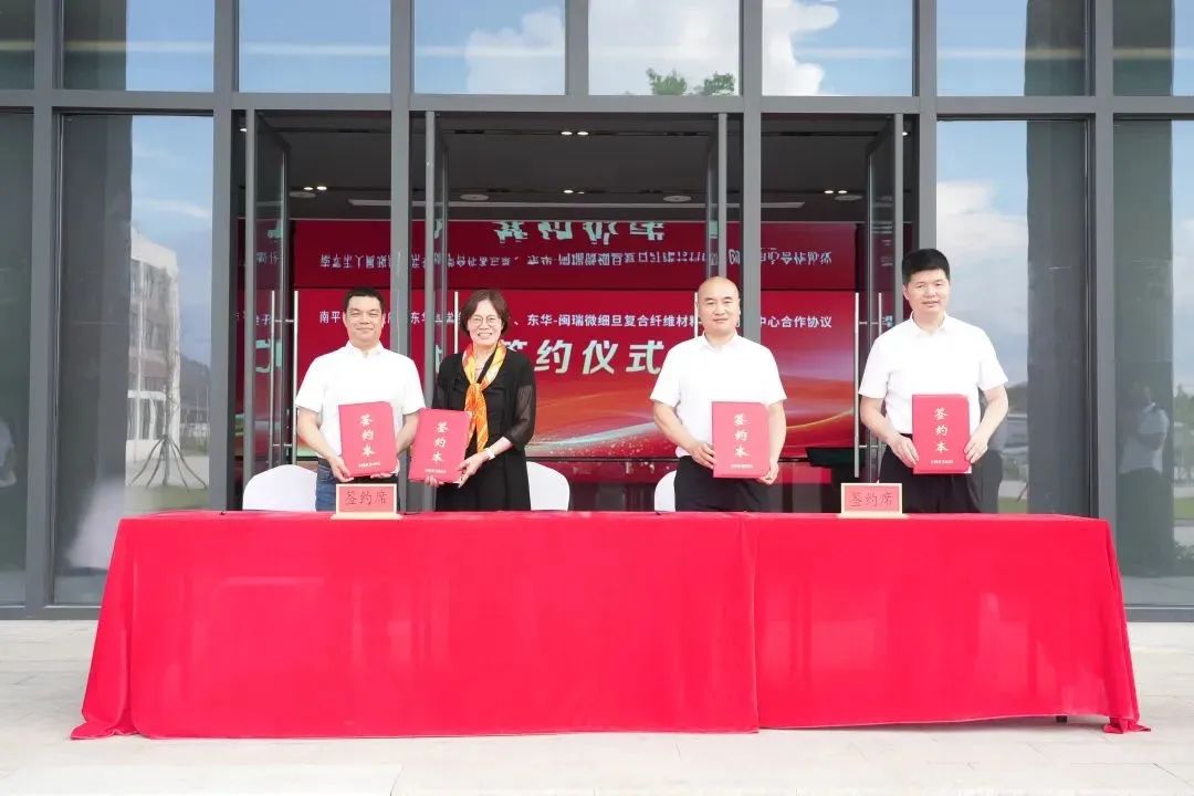 On June 23, the signing ceremony of the Donghua University–Minrui microdenier composite fiber materials joint innovation center was held in the Jiayang Economic Development Zone, Nanping City, Fujian Province. Professor Zhu Meifang from Donghua University expressed her hope that the signing would serve as an opportunity to deepen cooperation in the areas of talent resource supply, technology transfer, and industrial upgrading on the basis of consolidating existing collaboration. She emphasized the importance of leveraging the strengths of the research team to focus on key technological breakthroughs, promoting the functionalization and intelligent upgrading of fiber materials, and achieving complementary advantages and mutual benefits between the university and the local area.