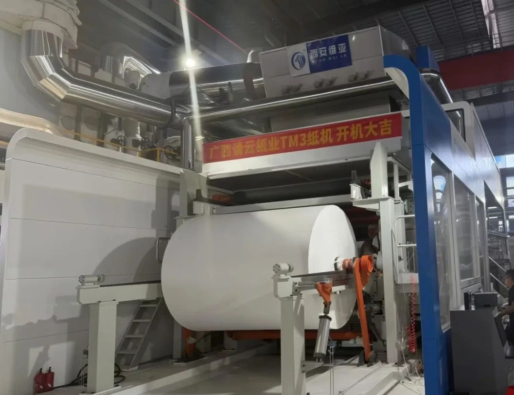 On August 3, the TM3 tissue machine of Guangxi Qingyun Paper Co., Ltd. successfully started up. The paper machine is a crescent-type paper machine provided by Xi'an Weya, with a width of 2850 mm and a designed speed of 1400 meters per minute. In May and June this year, the TM1 and TM2 tissue machines of Guangxi Qingyun Paper have been put into production.