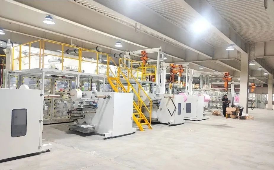 Recently, the first production line in Workshop 1#b for adult care products of Premier (Shandong) New Material Technology Co., Ltd. – the full-servo adult diaper production line (PX-CRLLK-200-SF) – has officially entered the material-carrying commissioning stage. This production line will further improve the production efficiency and product quality of Premier's adult care products. It adopts a full-servo drive system, which strictly controls the precision of cutting, lamination, packaging and other links through the servo control system. Its human-machine interface (HMI) and automatic detection system can realize real-time monitoring of production data, reduce manual intervention and improve stability. In addition, the production line can quickly switch between products of different specifications.