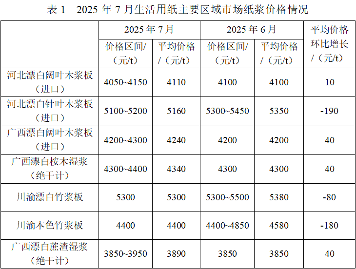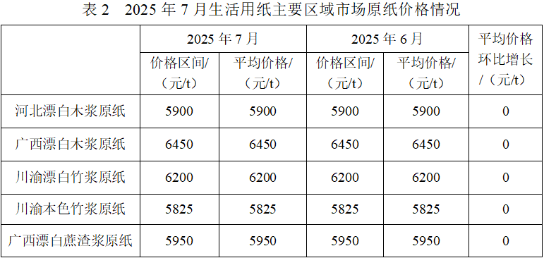 Prices of Pulp and Parent Tissue Roll in Major Regional Markets of Tissue Paper in July 2025