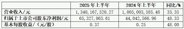 Hangzhou Nbond Nonwovens Co., Ltd. recorded an operating revenue of approximately 1.34 billion RMB in the first half of 2025, representing a year-on-year increase of 33.35%; the net profit attributable to shareholders of the listed company was about 65.3280 million RMB, with a year-on-year growth of 48.33%; the basic earnings per share stood at 0.37 RMB per share, a year-on-year increase of 48.00%.