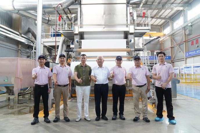 On August 26, Dr. Cao Zhenlei, Former President of the China Technical Association of Paper Industry , Chairman of the Senior Expert Advisory Committee, and Director of China National Household Products Industry Association (CNHPIA), visited Guangxi Jiangnan New Materials Co., Ltd. Lei Wenjun, Chairman of Guangxi Jiangnan New Materials Co., Ltd., accompanied Dr. Cao Zhenlei on a tour of the manufacturing base and provided a detailed briefing on the progress of the base construction and workshop’s operation status.