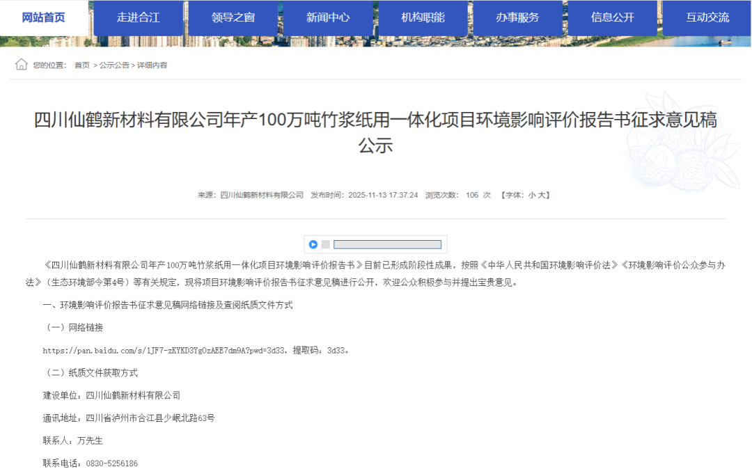 China Absorbent Hygiene Products Expo,China Feminine Care Products ExрoEnvironmental Impact Assessment (EIA) Public Notice for Sichuan Xianhe's 1 Million tpy Bamboo Pulp and Paper Project, Including 2 Hand Towel Machines and 6 Tissue Machines