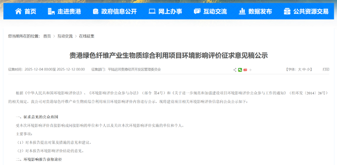 Recently, the EIA public notice for the Guigang Green Fiber New Materials Project was released by Lee & Man Paper Manufacturing Co., Ltd. of Guigang City, Guangxi Zhuang Autonomous Region. The project includes 500,000 tpy of Lyocell fiber and its downstream industrial chain products such as spinning and nonwoven fabrics, with a supporting construction of 500,000 tpy of dissolving pulp; 500,000 tpy of medical and hygiene products (product categories: diapers, sanitary napkins, panty liners, cotton pads, air-laid paper, etc.), with a supporting construction of 500,000 tpy of fluff pulp; as well as the construction of corresponding supporting facilities including a power workshop, water purification station, warehouses and conveying pipelines.