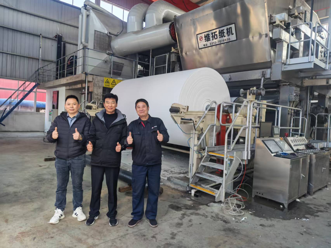 On December 8, Anhui Hongtai Paper Co., Ltd. commissioned a crescen tissue machine featuring a width of 3.5 meters and speed of 1,200 m/min. Supplied by Baoding Weituo, this machine has a capacity of 24,000 tpy. It is equipped with energy-efficient breathable hoods, multi-stage turbulent headboxes and high-performance frequency converters, which can effectively reduce various costs such as steam and power consumption.